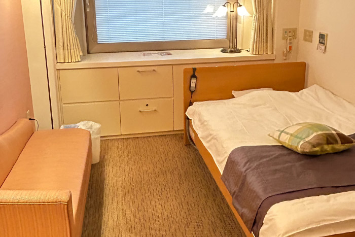 淡い基調のウォールカラーで、ゆったりとリラックスできる静かな個室をご用意しています。 家庭的な雰囲気で、ゆったりとくつろげるよう、セミダブルのベッド、そしてダウンライトで穏やかな時間を過ごしていただけます。また、産後の身体に優しいように、リファのシャワーヘッドを全室に設置しています。